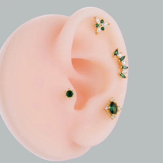 Create your ideal ear stack with our collectable ear piercing studs, hoops and huggies made from sterling silver, real gold and hypoallergenic titanium and stainless steel plated in 18K gold.