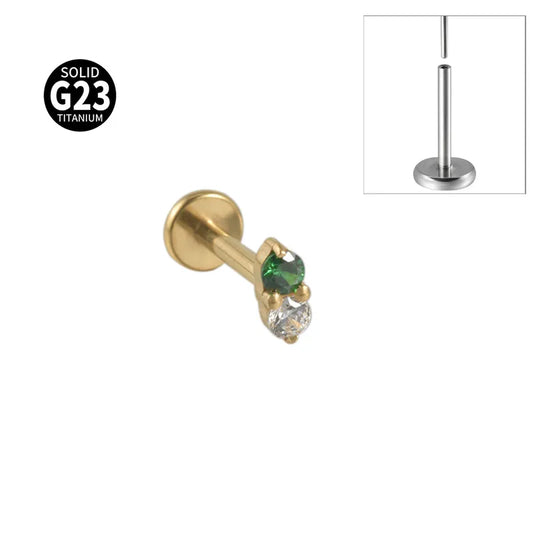 Green Gem | G23 Titanium Threadless Flat Back Stud
