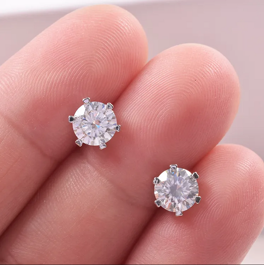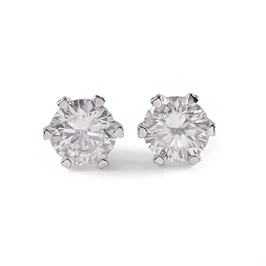 6.5mm Four Prong Moissanite Studs in Sterling Silver