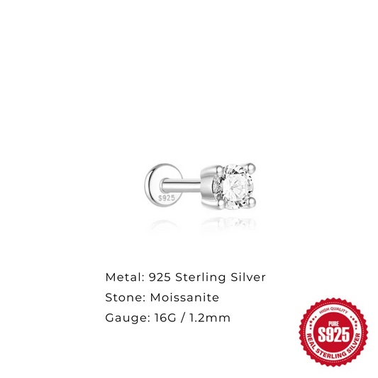 4mm Moissanite | Sterling Silver Flat Back Stud