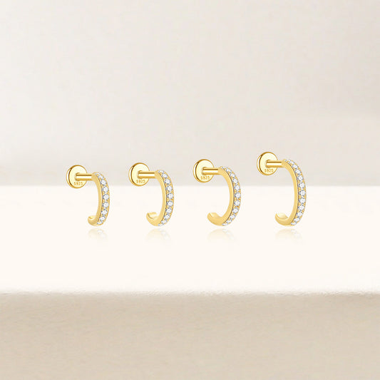 Hybrid Huggie Flatback Stud in Sterling Silver (1pc single)
