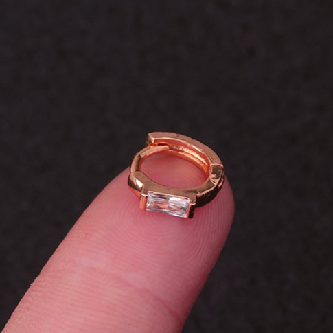 A medium size sleeper earring with a white baguette cubic zirconia.