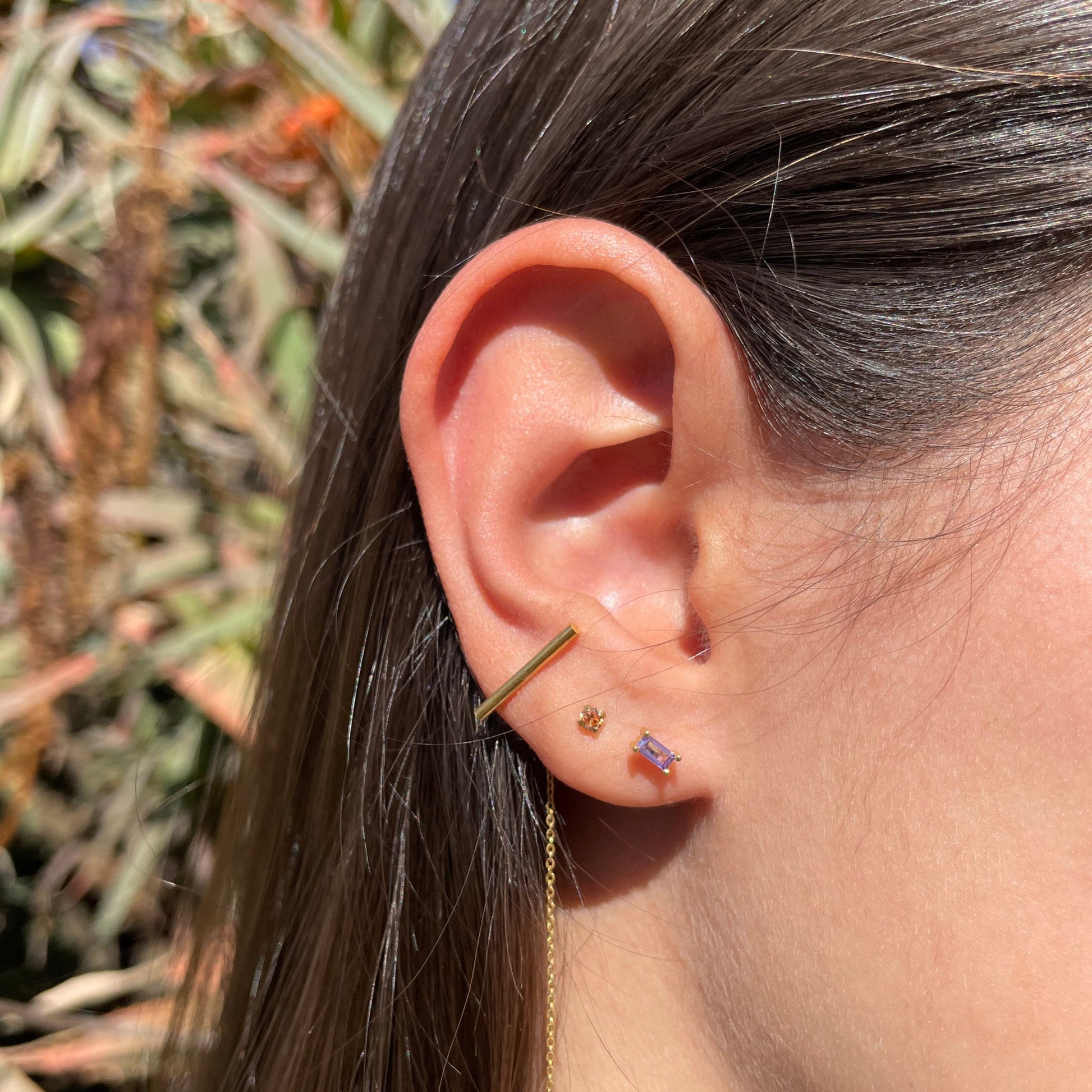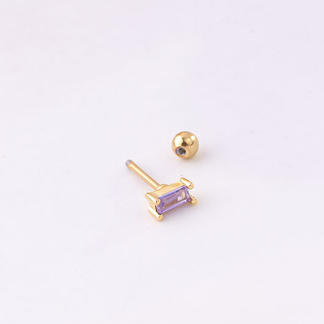 Single piercing stud set with a coloured baguette cubic zirconia.