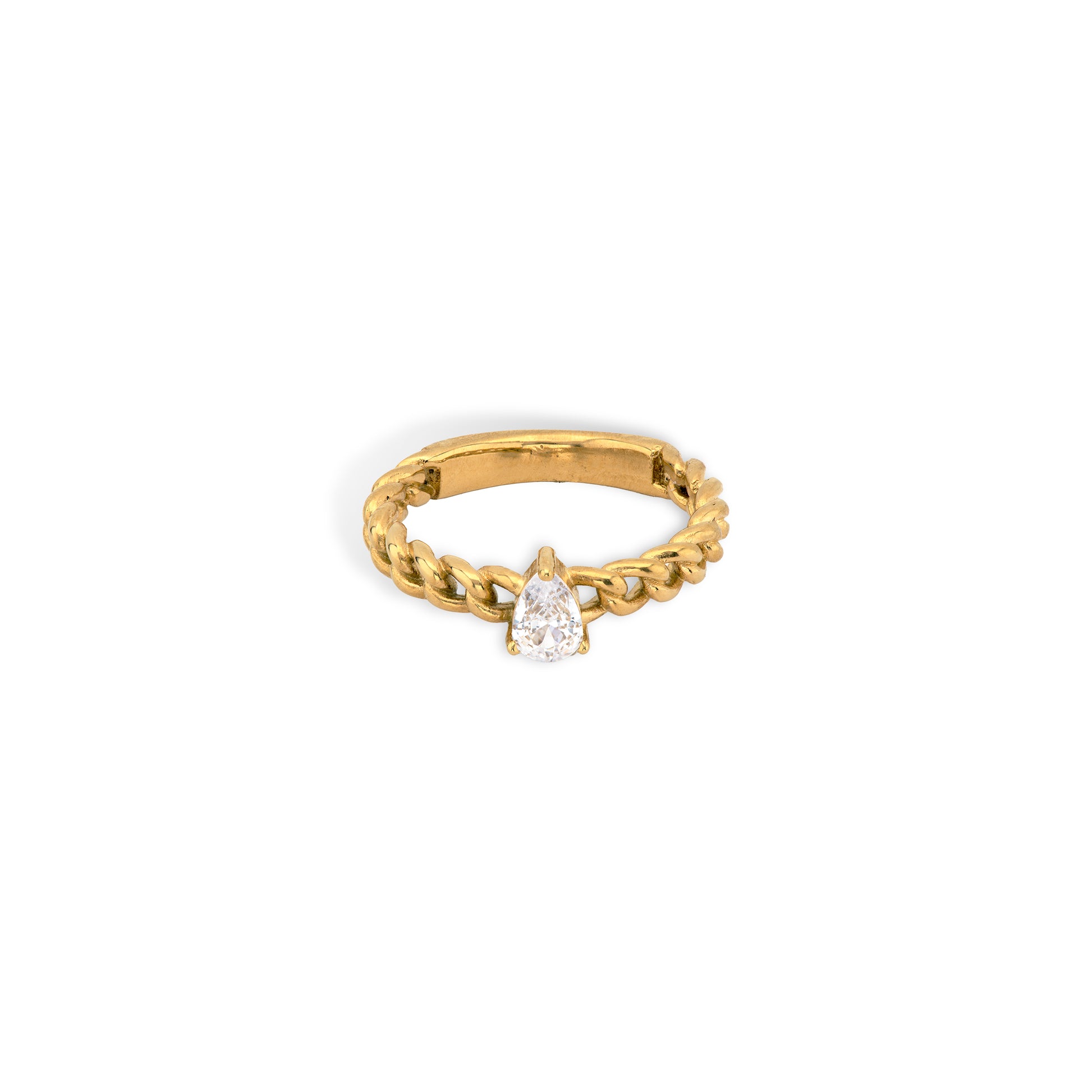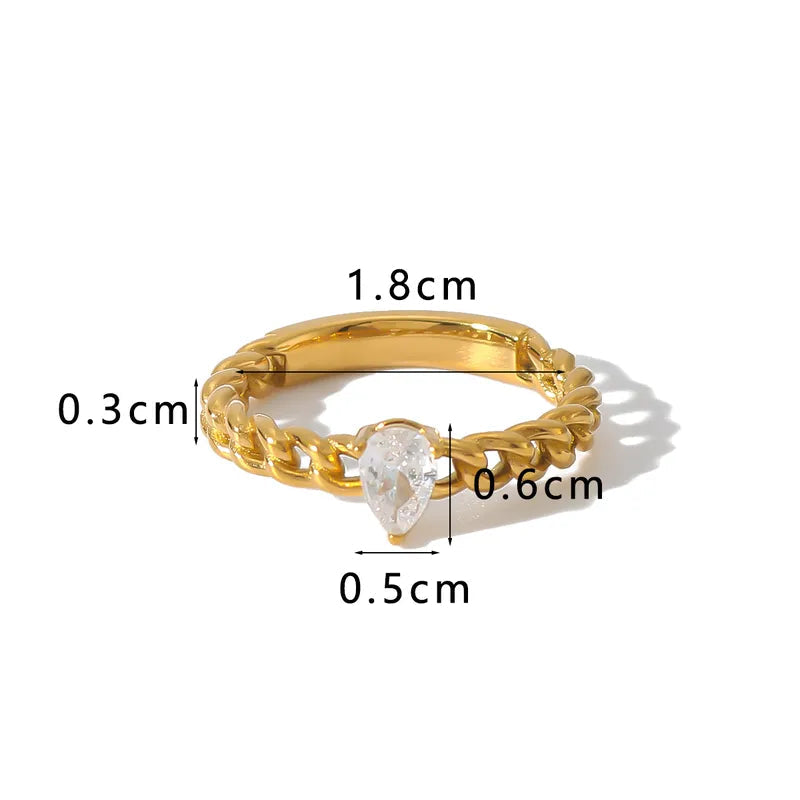 A stunning take on the popular Cuban chain - our Emily ring set with a pear cut CZ.