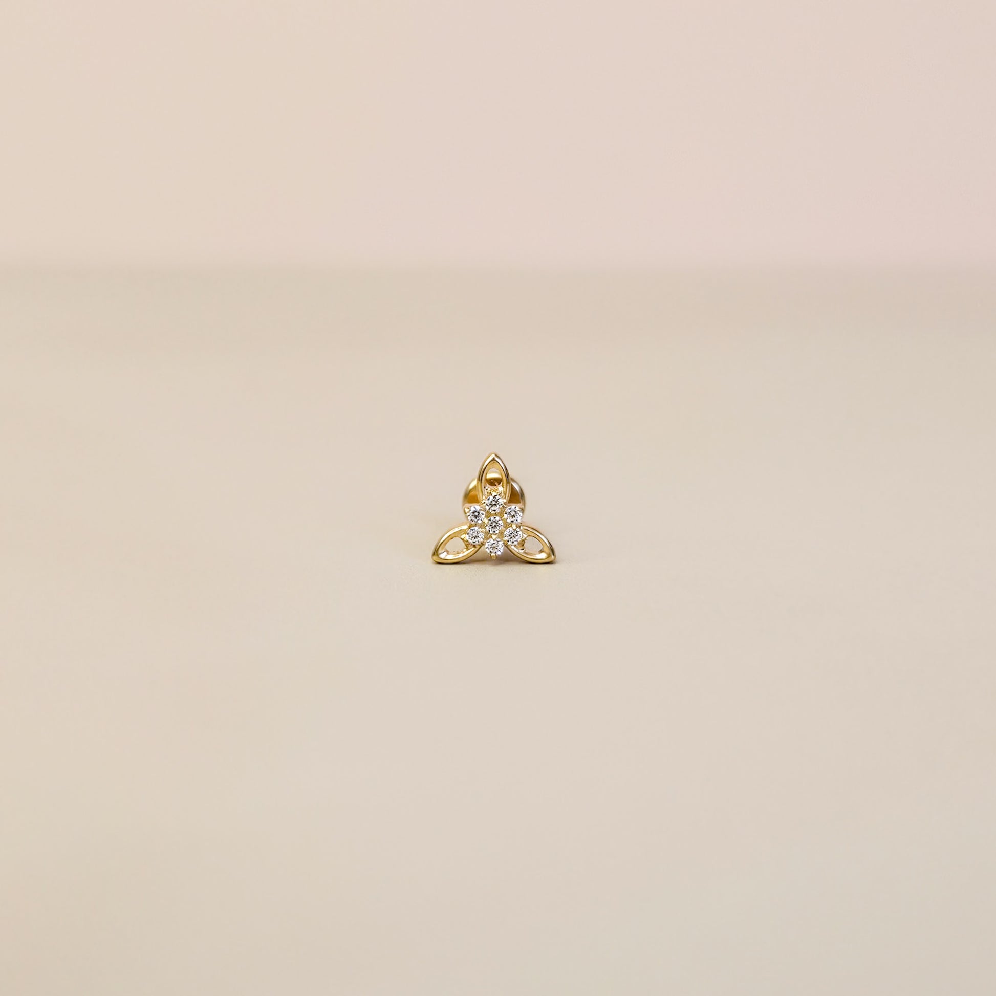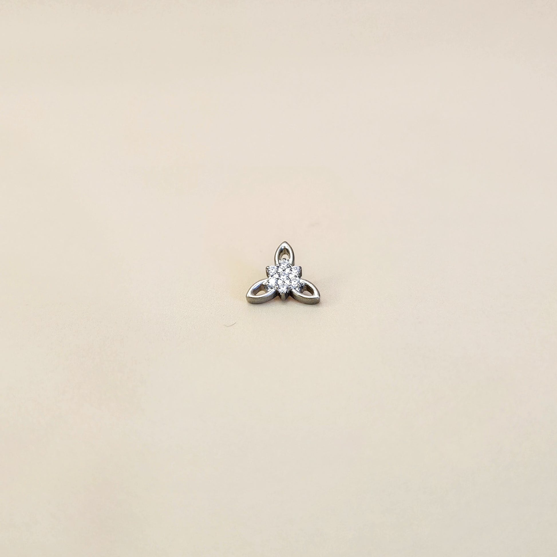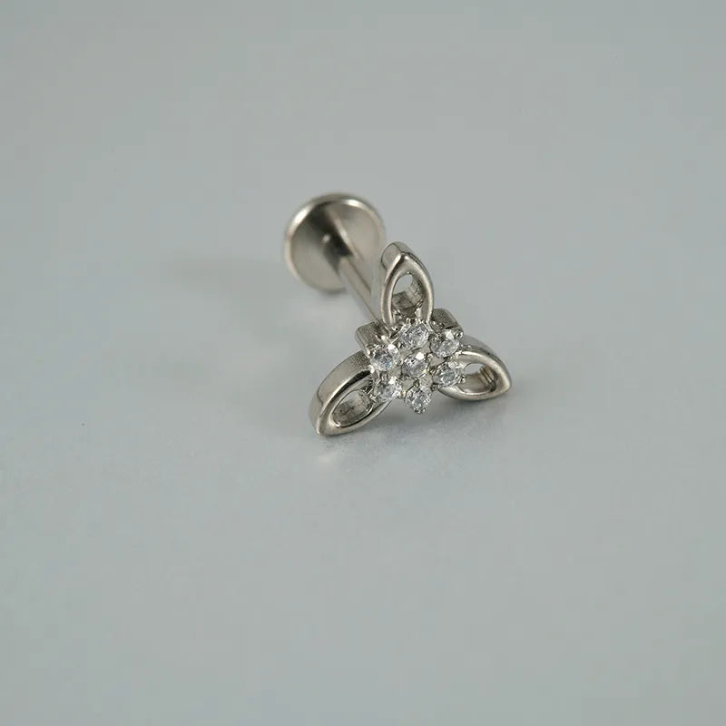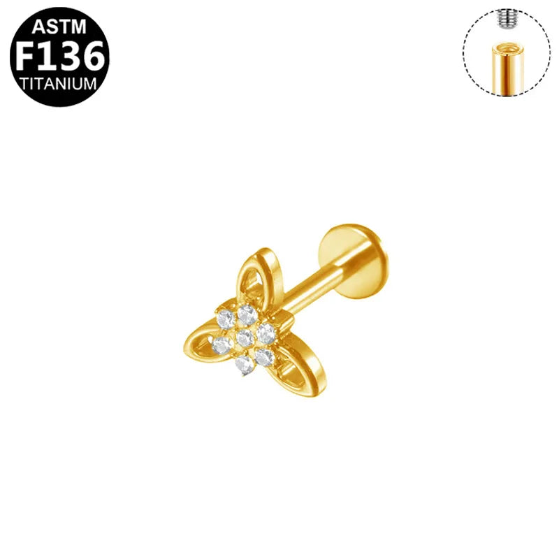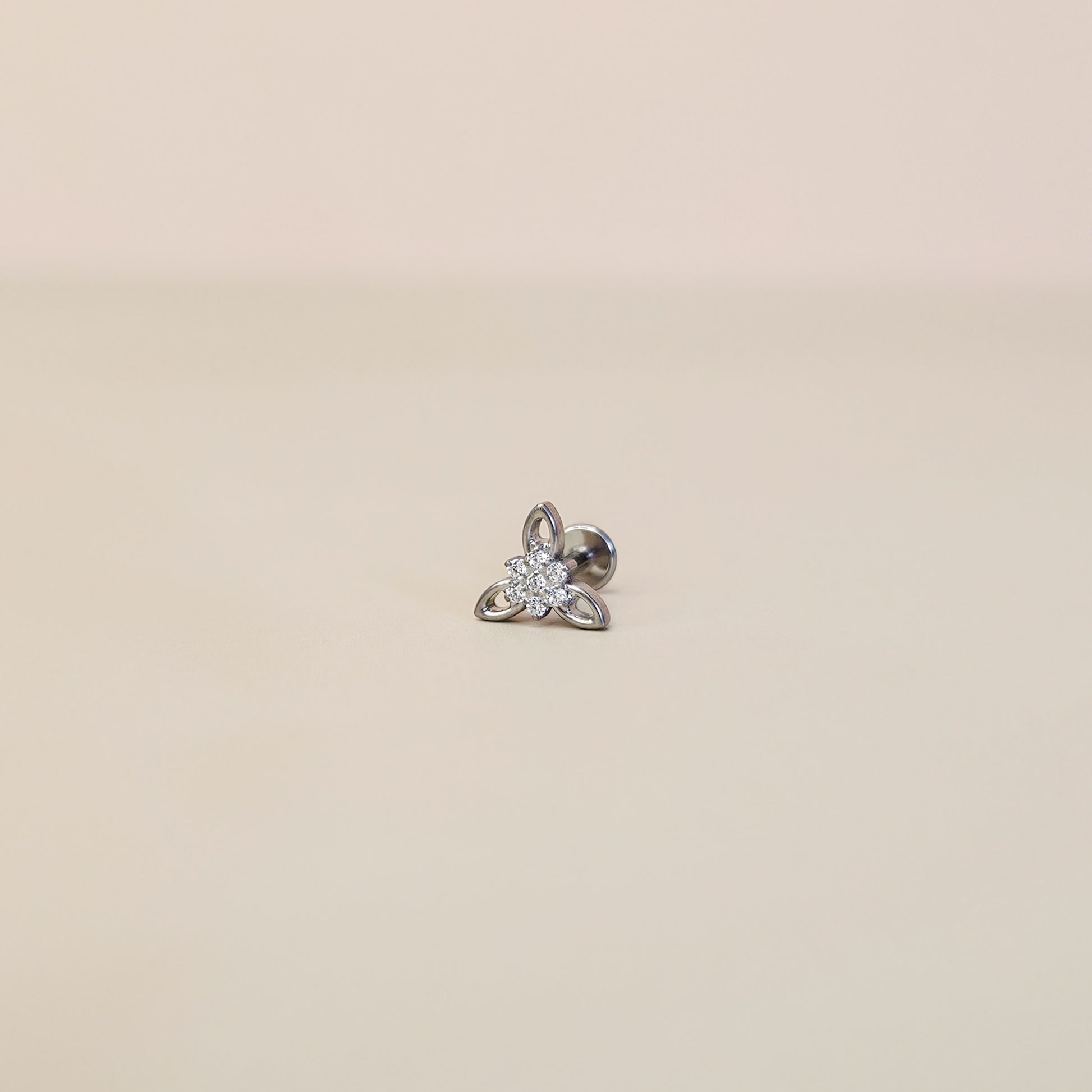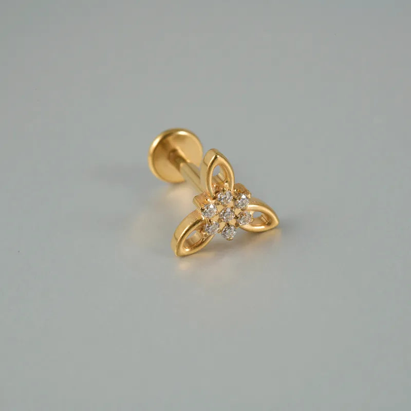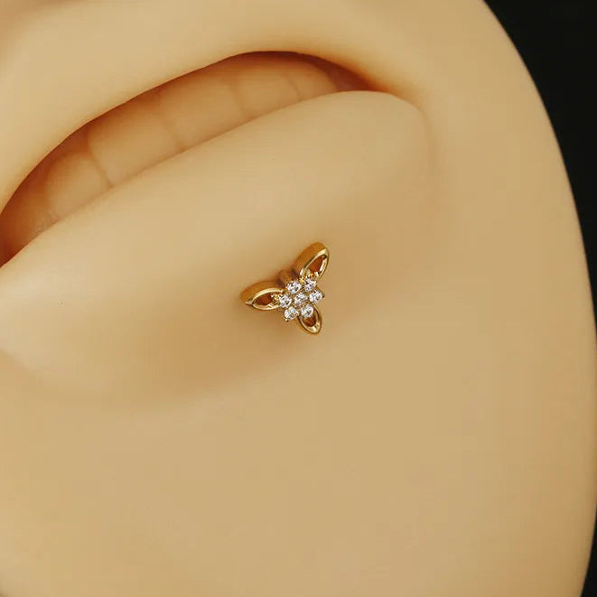 Hypoallergenic G23 titanium flat back cartilage piercing stud with Edelweiss flower motif.