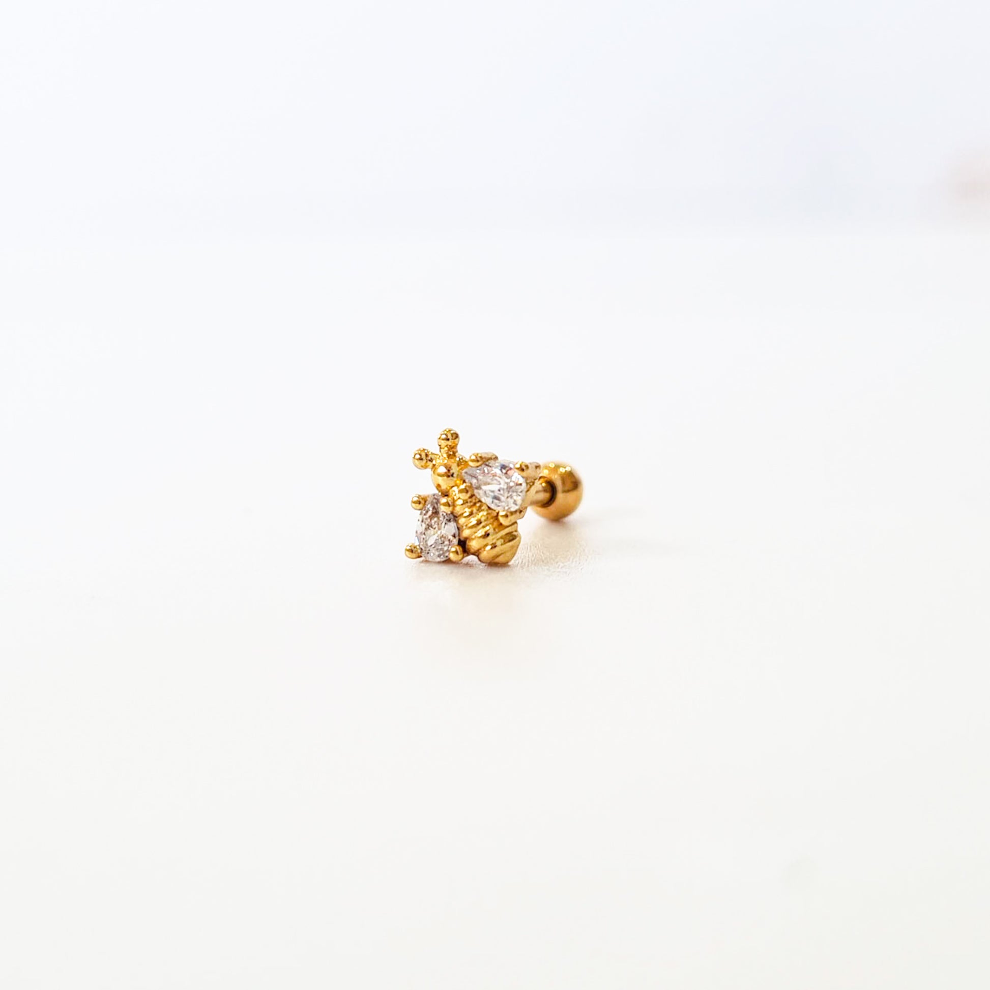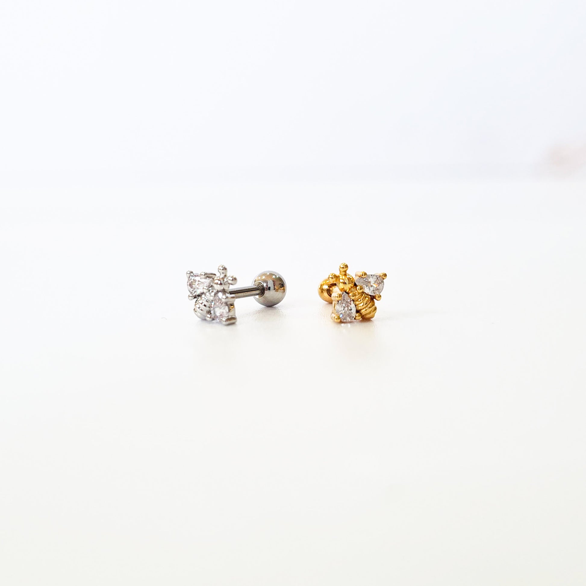Cute glitter bug single piercing stud set with cubic zirconia in the little wings.