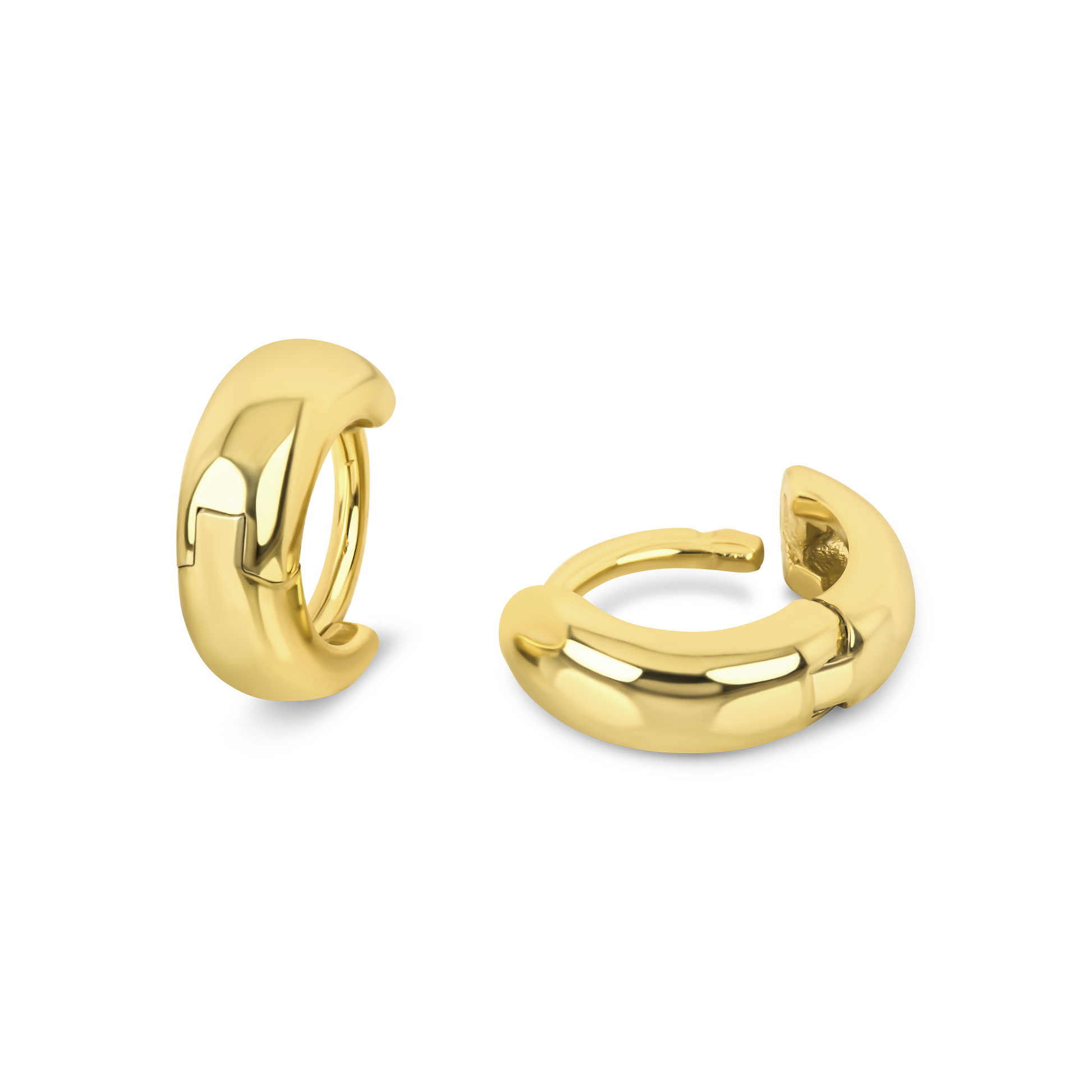 High gloss, slightly thicker sterling silver huggie earrings with a clicker closure for all day comfort.