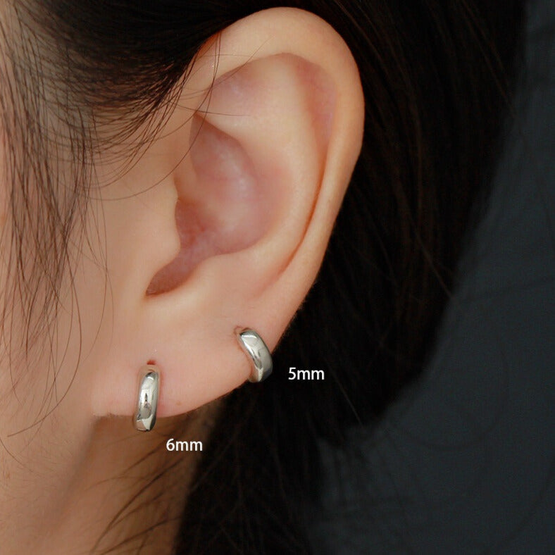 Glossy Thick Huggies (5mm) in Sterling Silver
