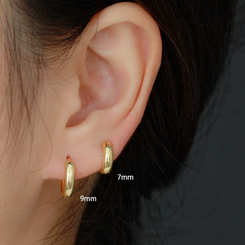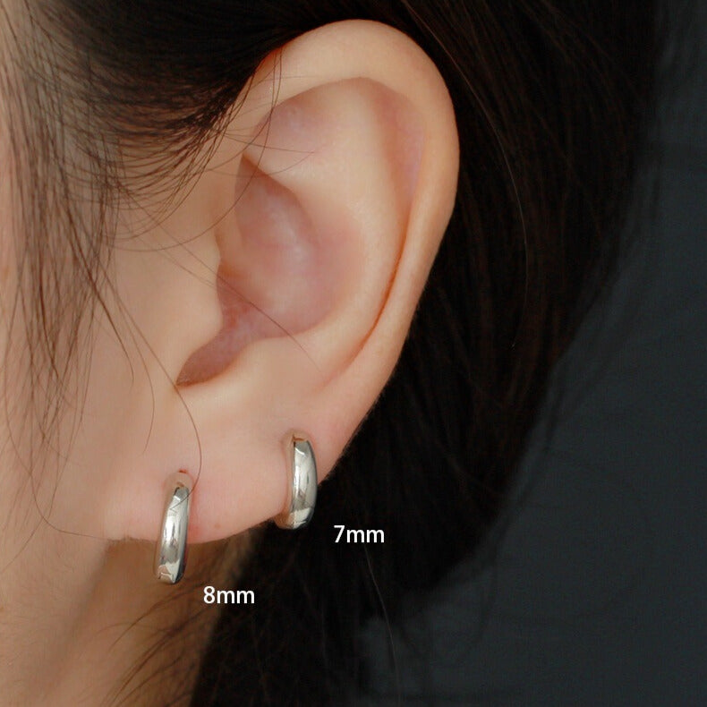 Glossy Thick Huggies (7mm) in Sterling Silver
