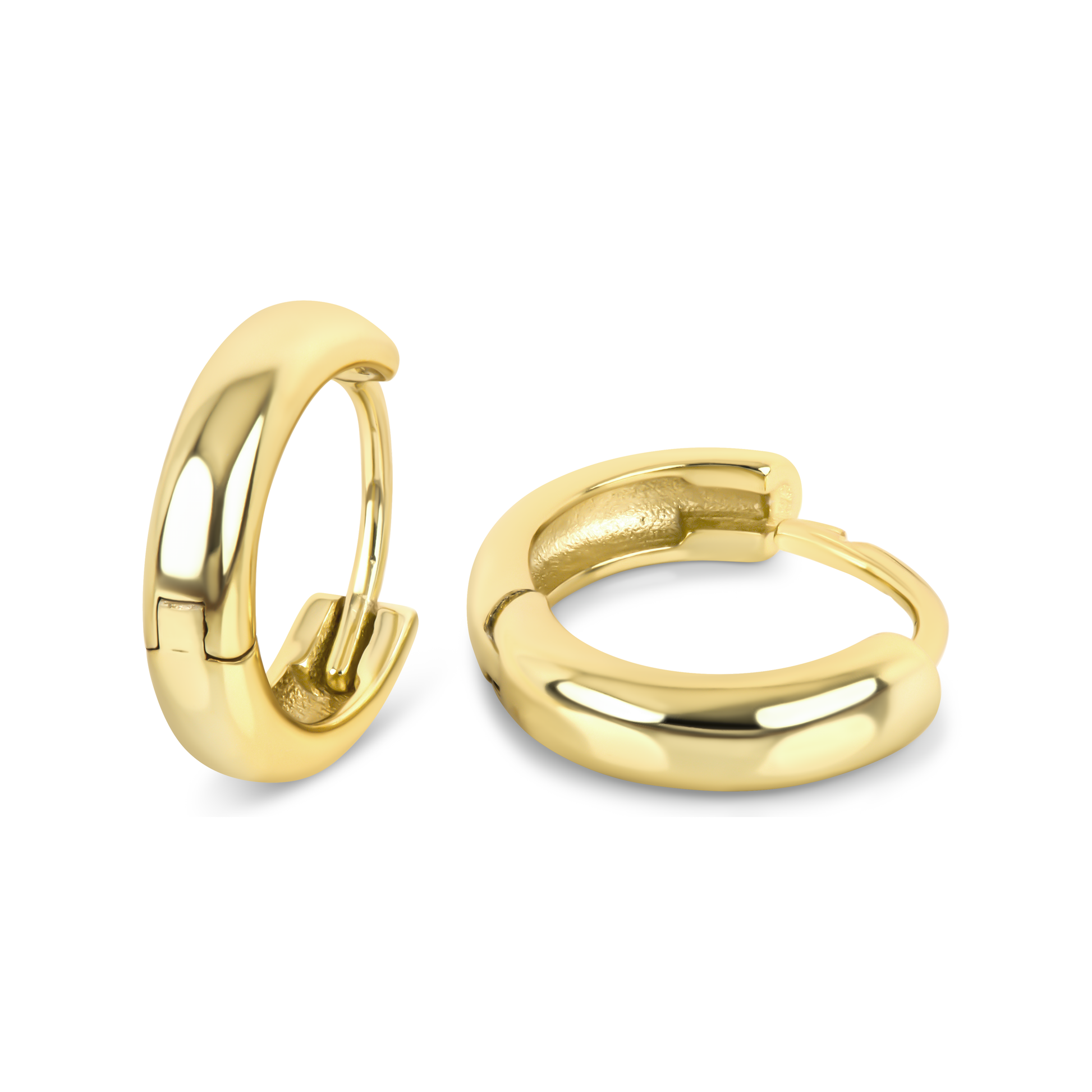 High gloss, slightly thicker sterling silver huggie earrings with a clicker closure for all day comfort.