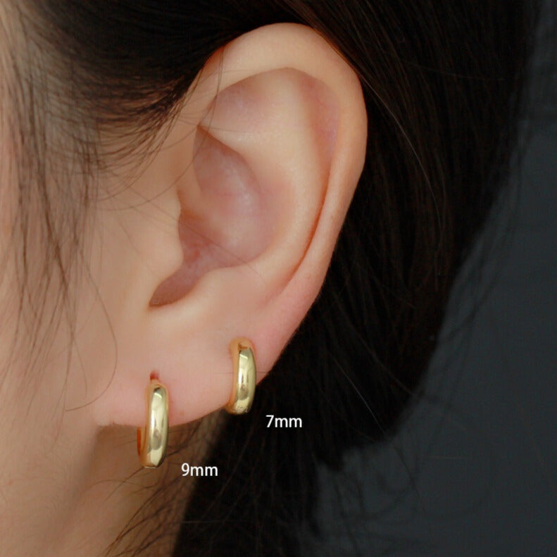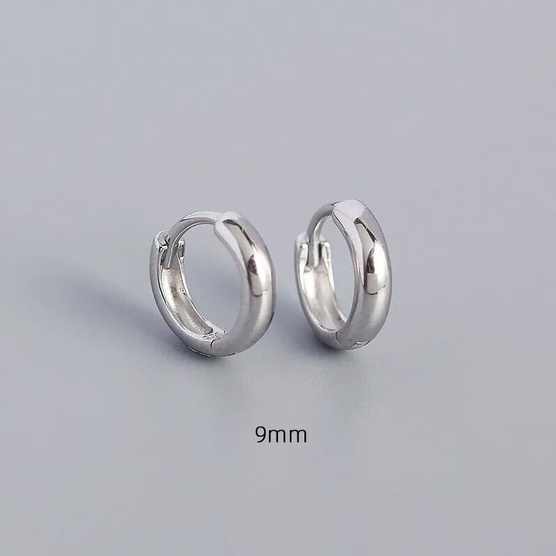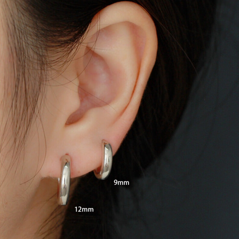 Glossy Thick Huggies (9mm) in Sterling Silver