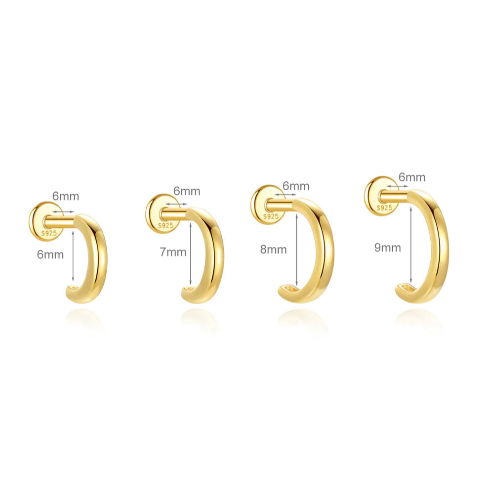 Hybrid Huggie Flatback Stud in Sterling Silver (1pc single)