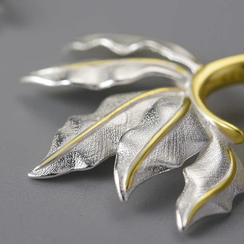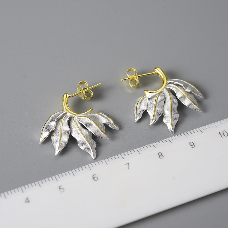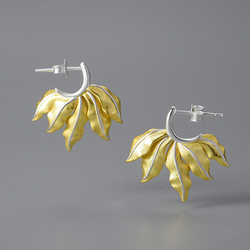 Stunning pair of gold plated sterling silver leaf hoop earrings.
