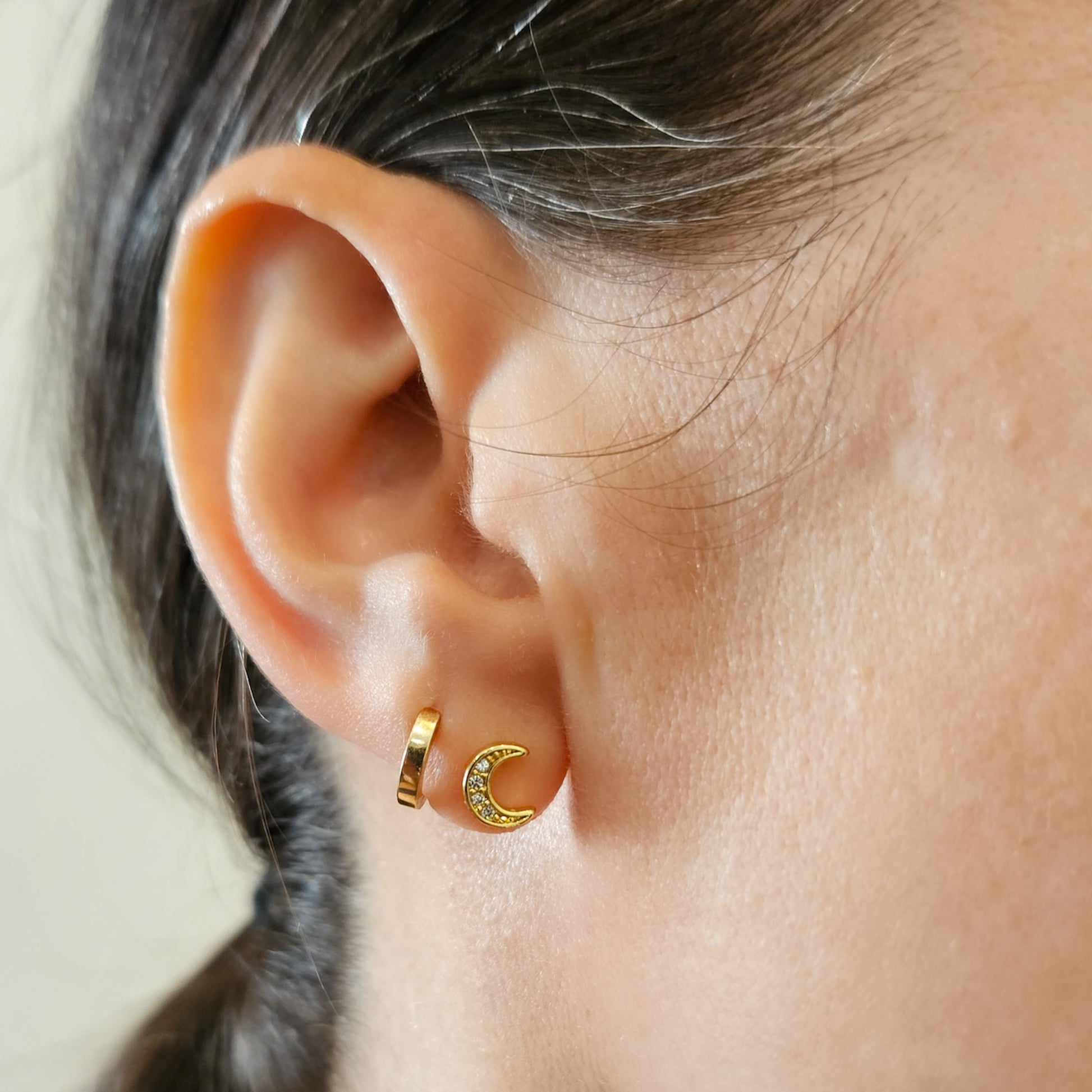 A stunning minimalist moon stud earring that is comfortable and perfect for daily wear, earring stacking or wearing solo.