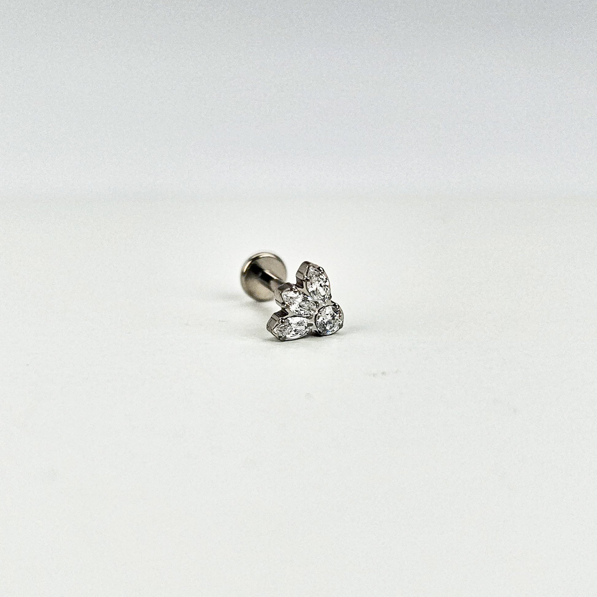 Hypoallergenic G23 titanium flat back cartilage piercing stud with cubic zirconia.