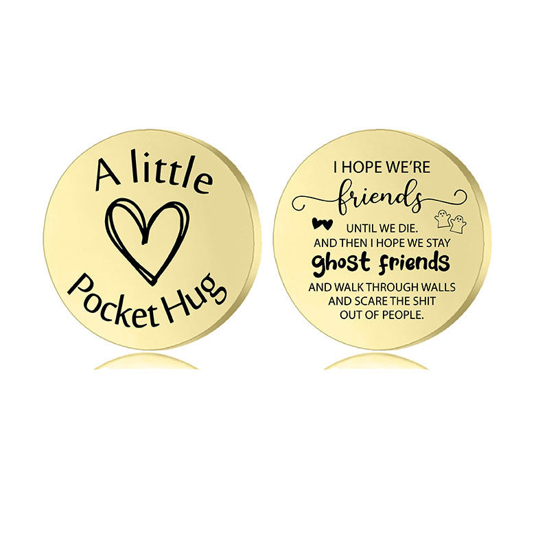 A round 3cm coin engraved with a special message to carry with you where you go.