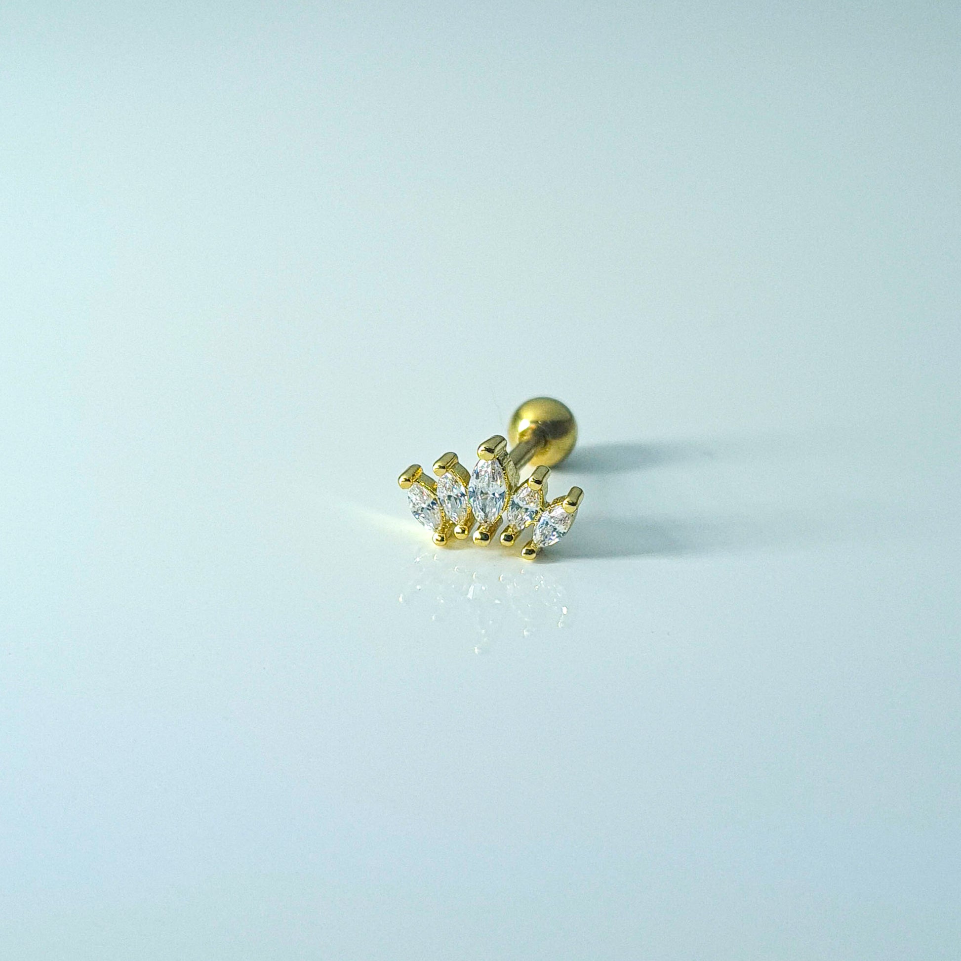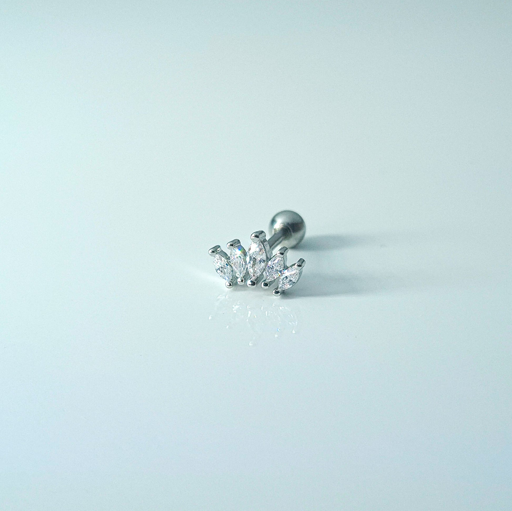 Curvy graduated marquise cubic zirconia single piercing stud.