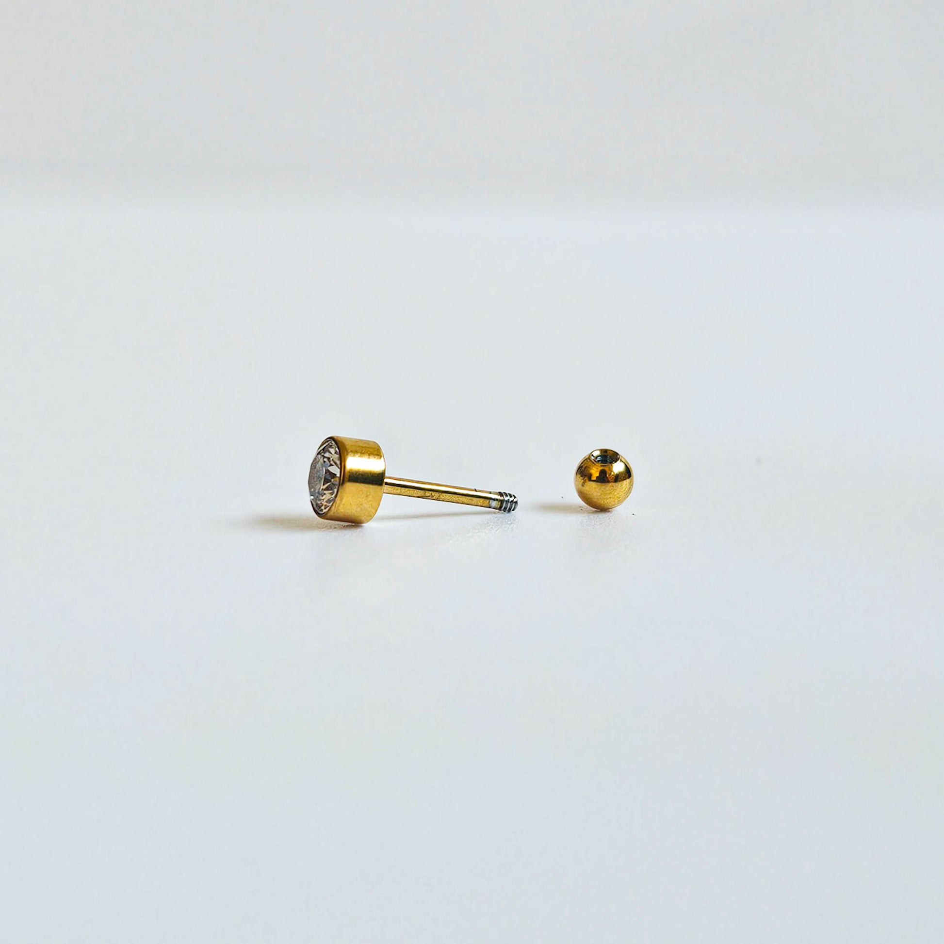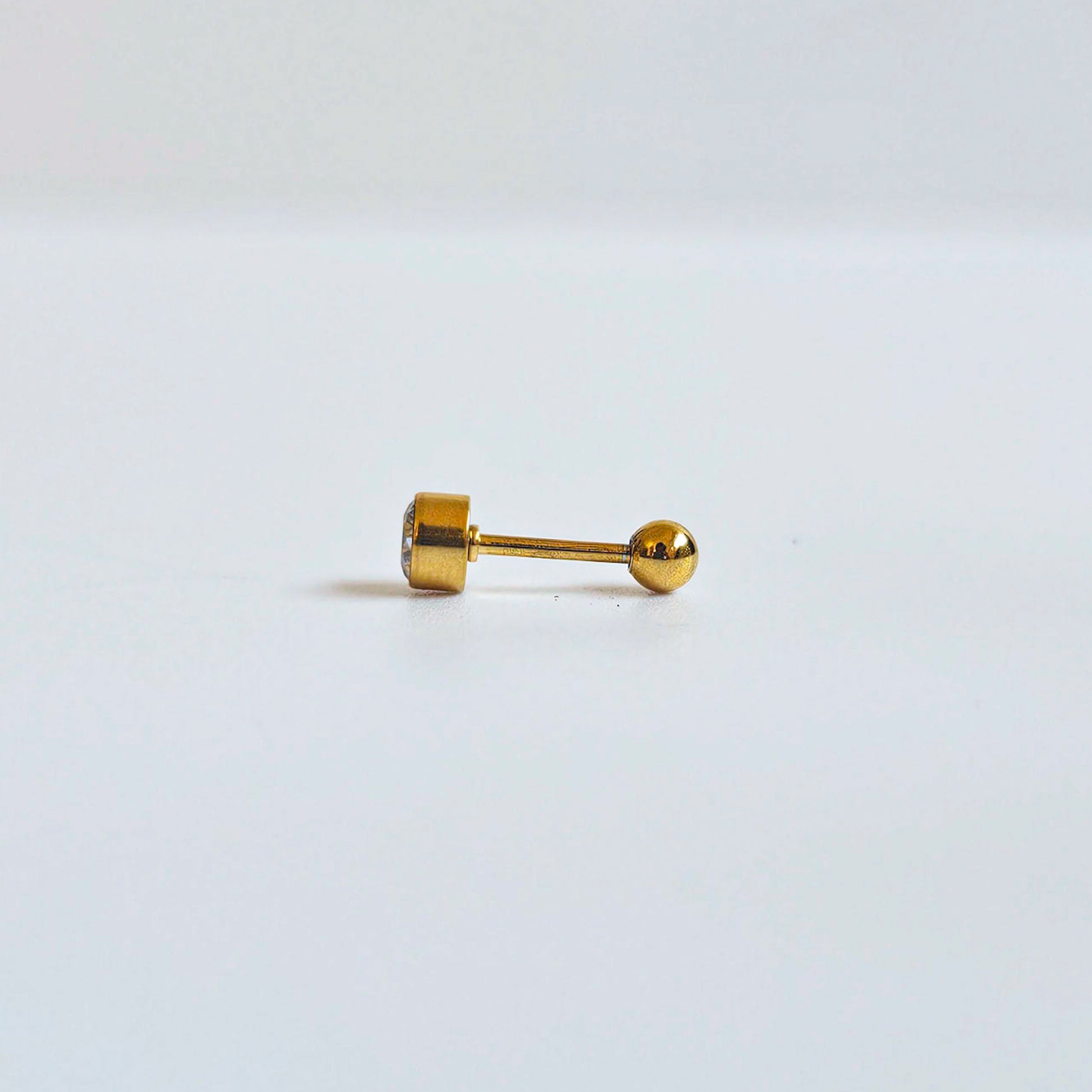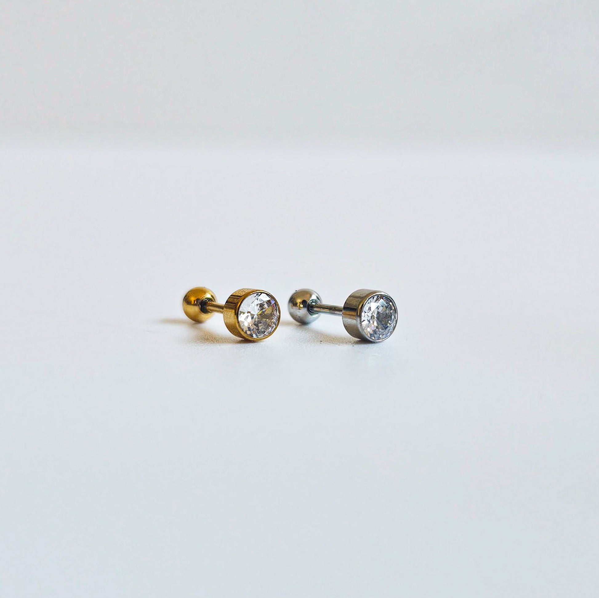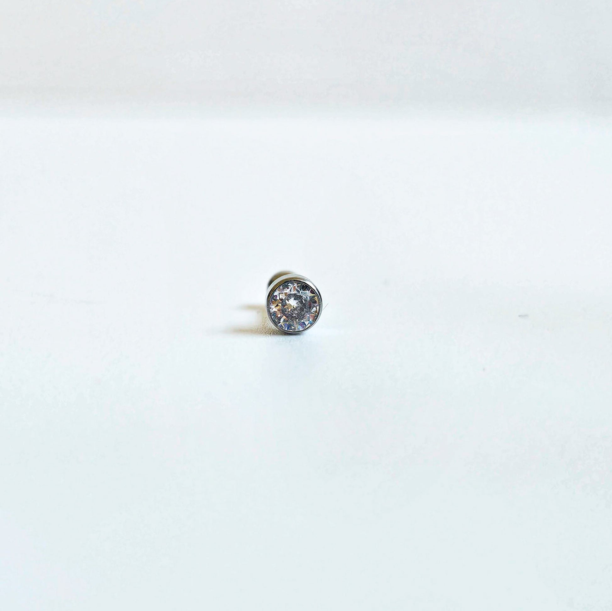 A bezel-set round cubic zirconia single piercing stud for an all-seasons, classic addition to your ear stack.