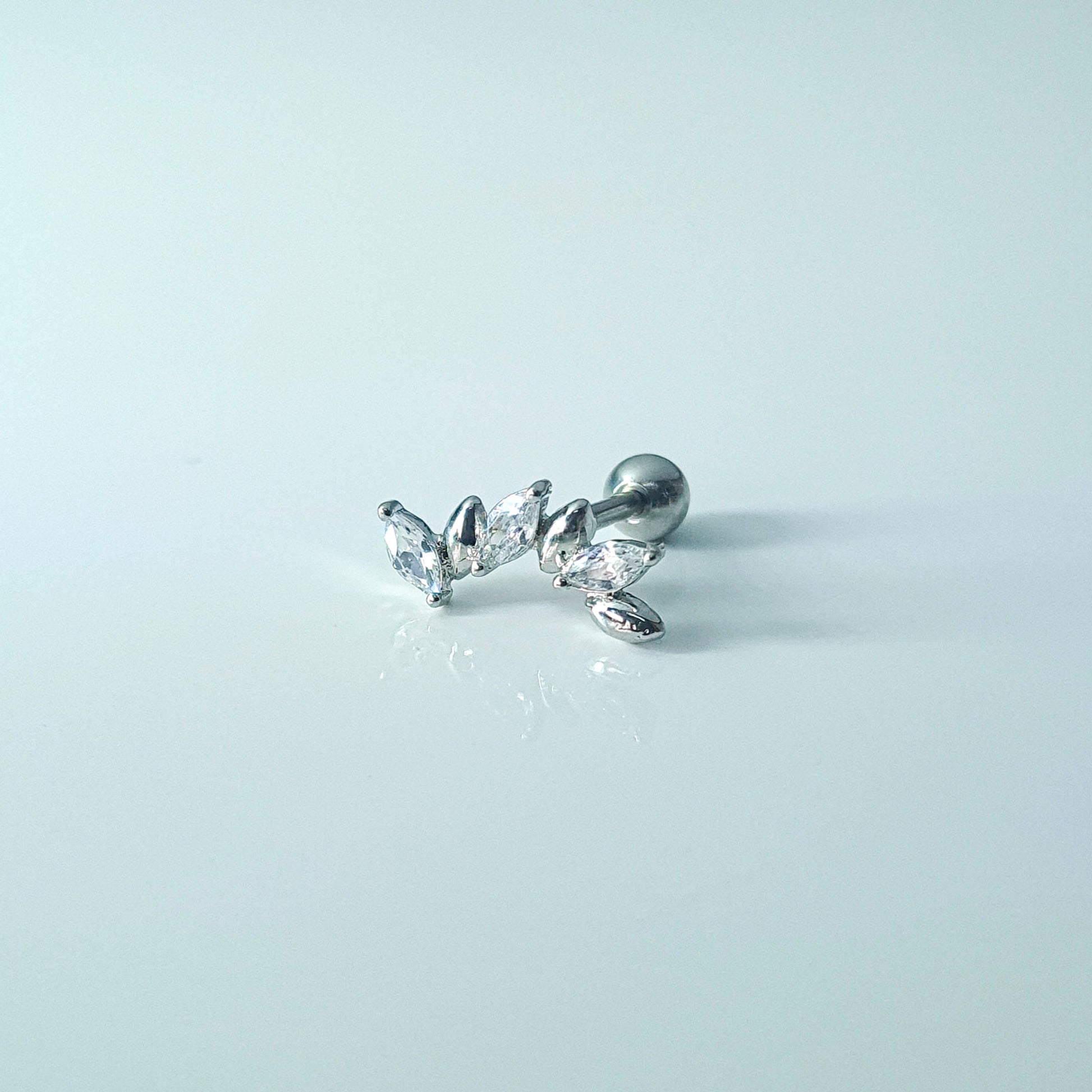 Curved single piercing stud earring set with three marquise cut cubic zirconia.