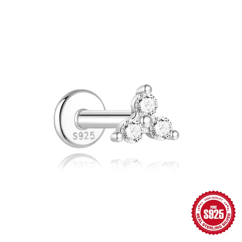 Sterling silver flat back cartilage piercing stud with 3 x 1mm round moissanites.