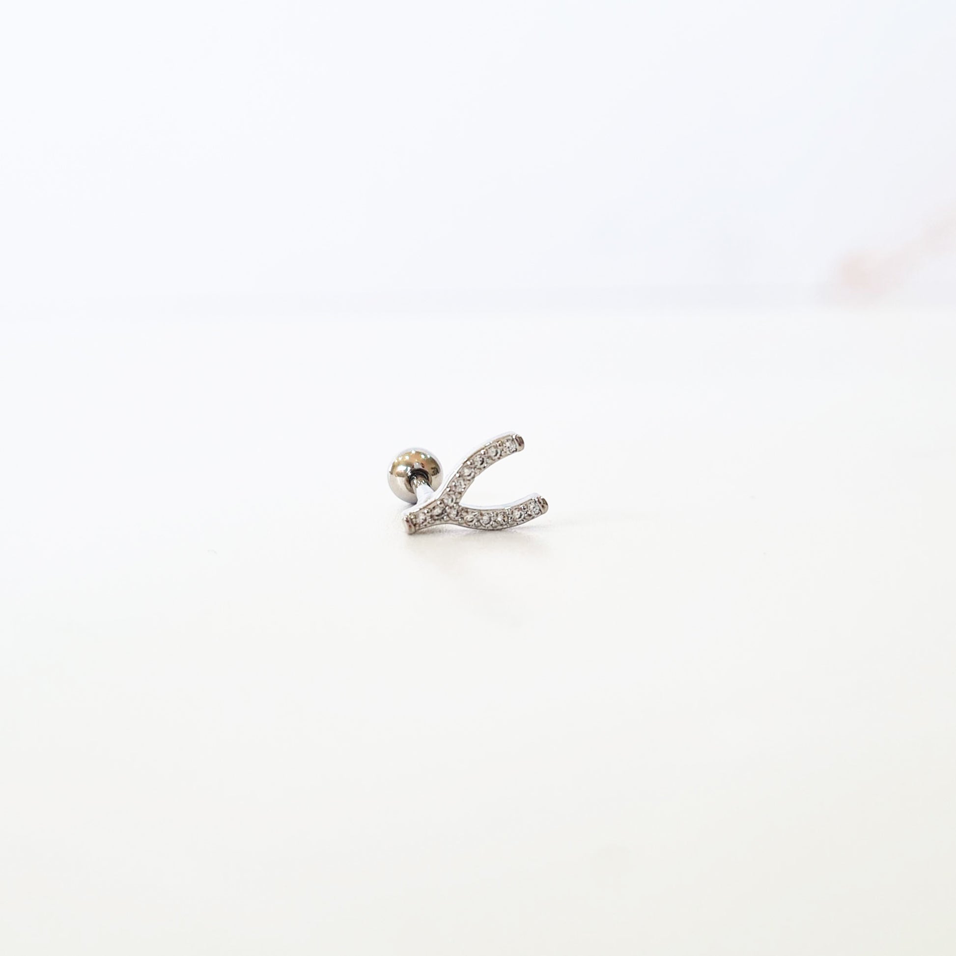 Cute wishbone single piercing stud set with cubic zirconia to bring some luck to your day.